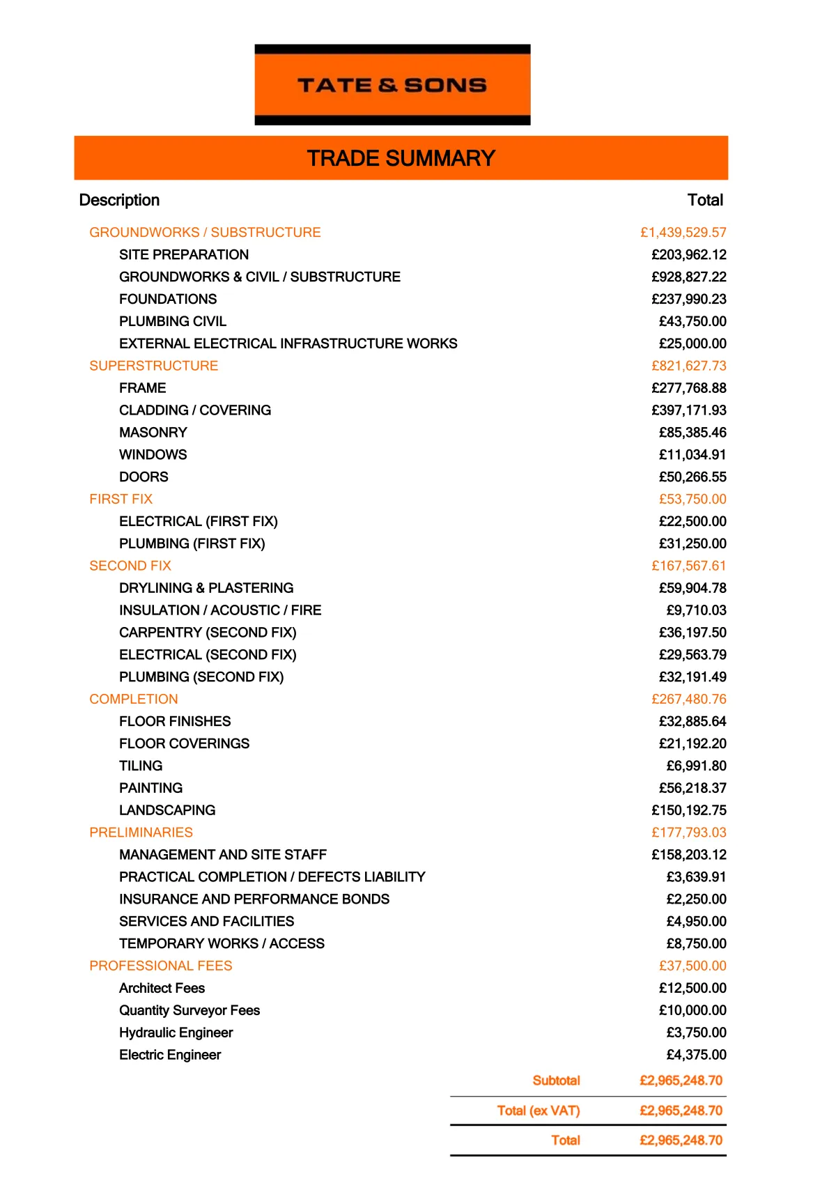 Through our successful procurement, management and delivery of multiple projects nationwide. We have a detailed scopes of works and regional cost libraries for all construction projects in all sectors, from residential to infrastructure. See below typical average elemental building costs analysis based on our in house data.
